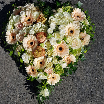 Det fylte hjertet benyttes ofte fra barnebarn eller oldebarn, der vi tar utgangspunkt i fargene i kistedekorasjonen.